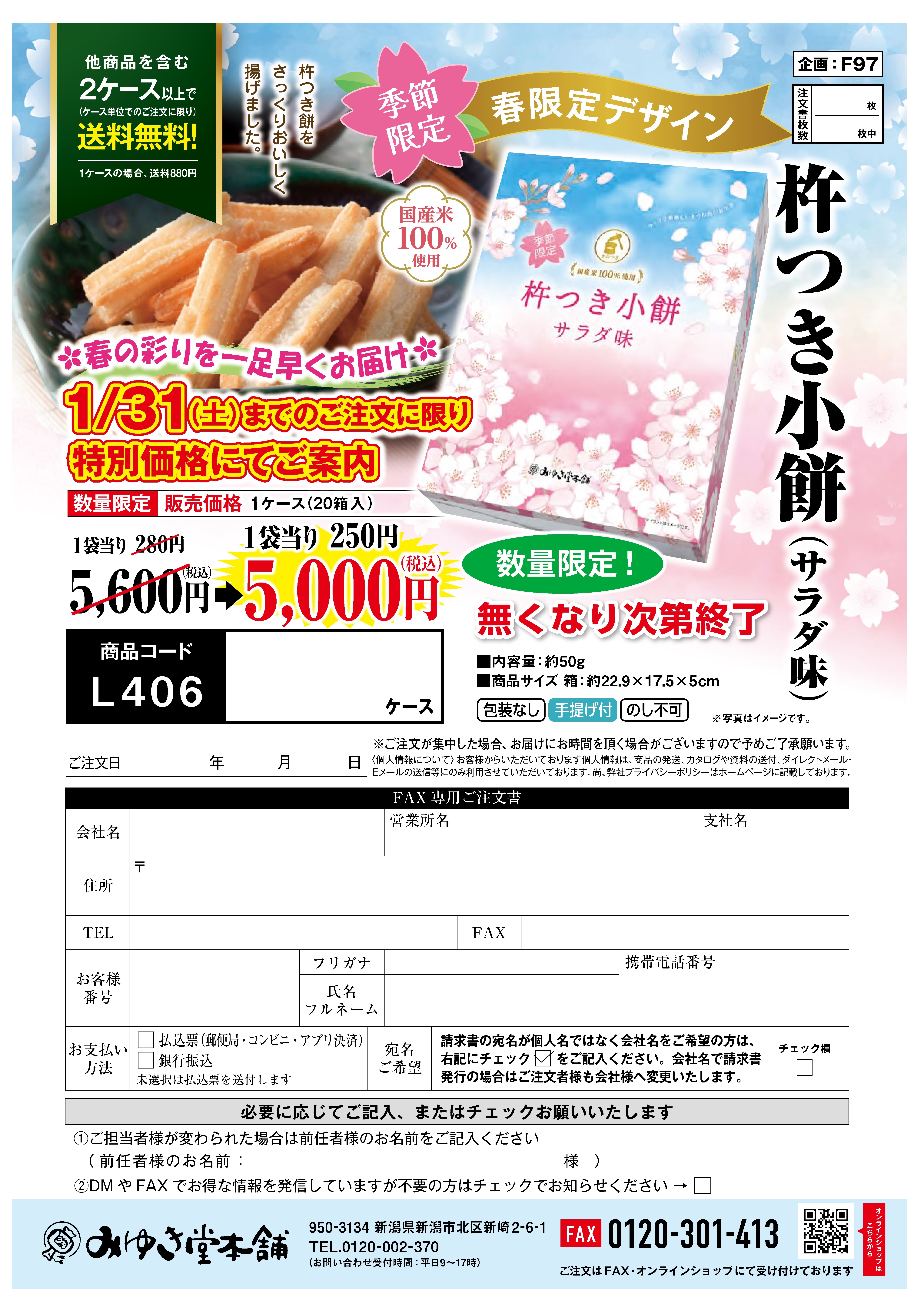 ⁂春の彩りを一足早くお届け⁂ 1/31(土)迄のご注文に限り、杵つき小餅サラダ味【春限定デザイン】1ケース5,000円です